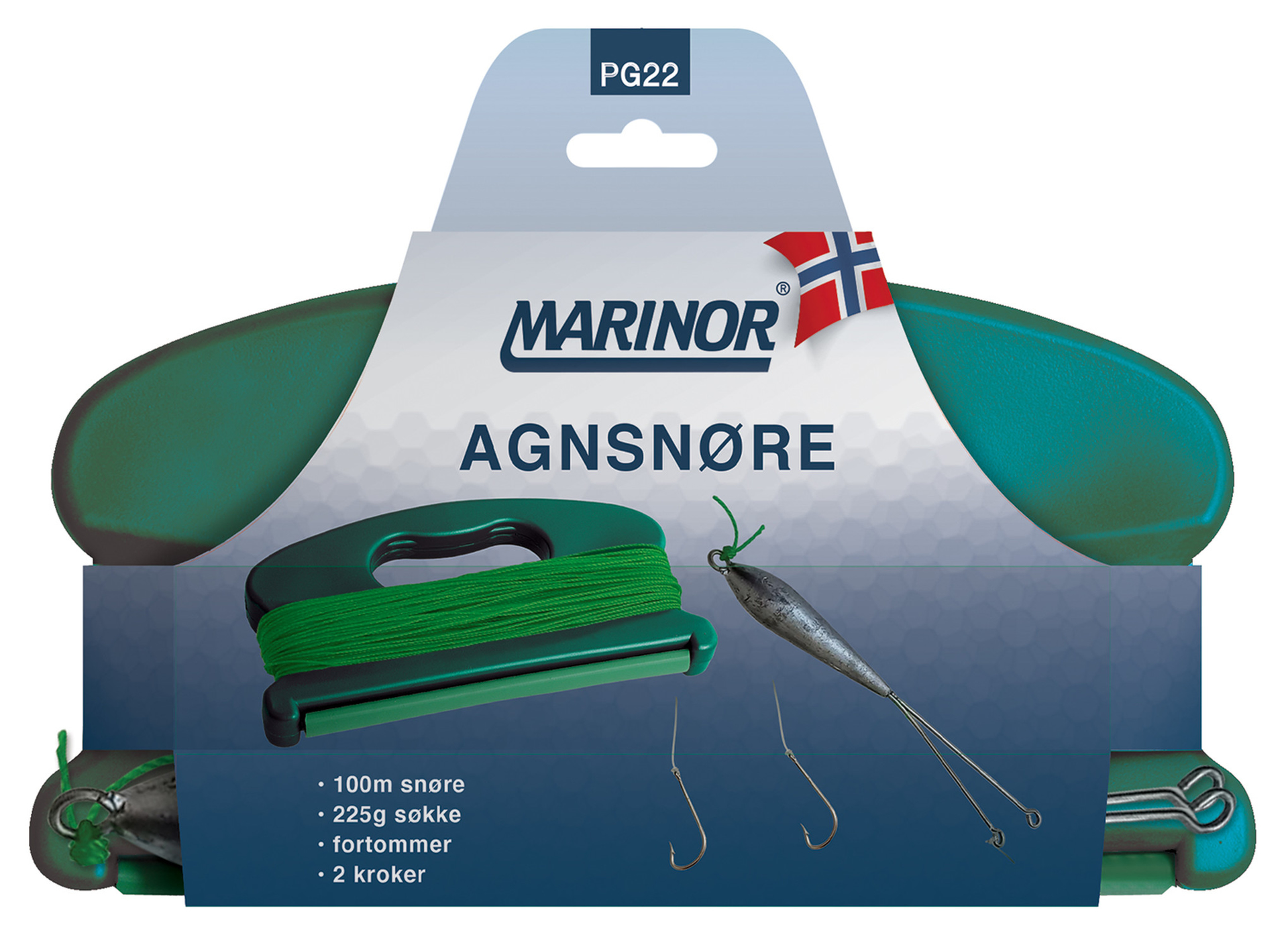Marinors agnsnøre har sprisøkke, fortommer, flette line og kroker til å feste agn på. Ideell til spennede agnfiske.