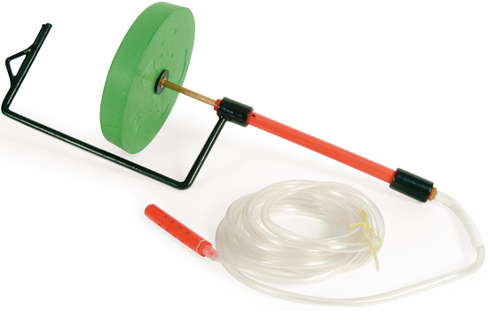 1. Dypp hele pumpen under vann2. Heng så pumpen på utsiden av båten, slik at vannringen på flottøren er i midten når du forlater båten3. Legg silen på laveste punkt som skal lenses4. Resten ordner pumpen selv