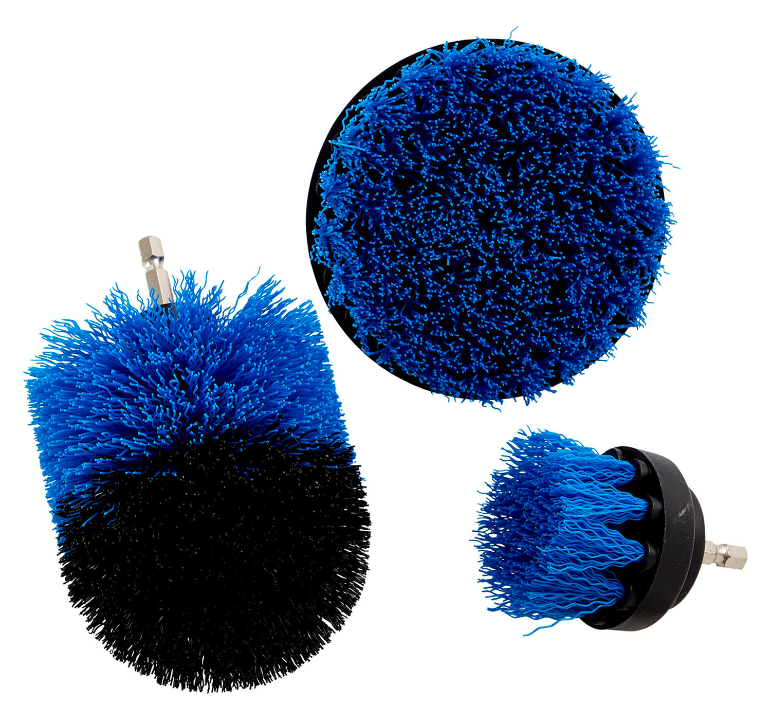 Praktisk sett med assorterte børster som brukes i kombinasjon med en elektrisk drill.