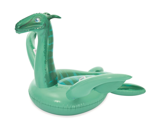 Dinosaurenen har to kraftige håndtak som gjør det enkelt å holde seg på, selv når det blir glatt fra bassengvann.
