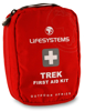 Plaster, tape, saks, pinsett, antiseptiske servietter, bandasje og gassbind, sikkerhetsnåler, vinylhansker, febernedsettende, gnagsårplaster og førstehjelphefte. Vekt 240g.