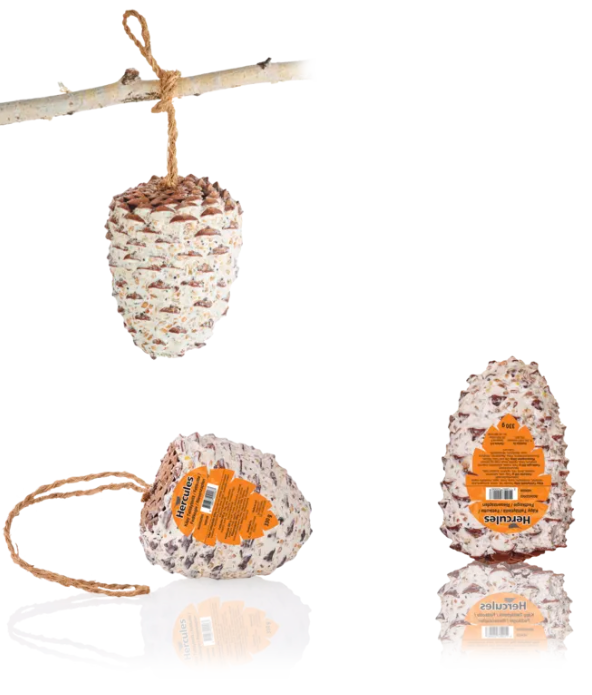 Ekte pinjekongle som er fylt med fett og oljeholdige frø. Fettkongle 330g: