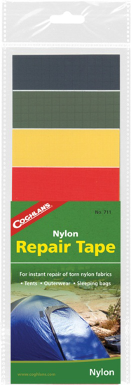 Nylon Repair Tape er et smart lite sett med rip-stop tape i fire farger med supergodt lim.