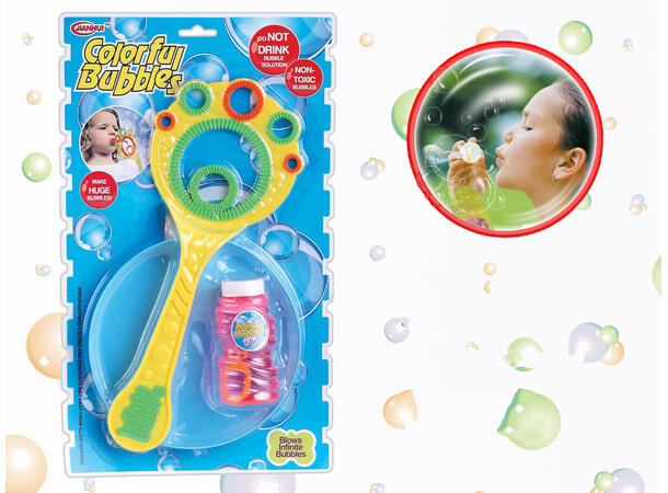 Settet inneholder en såpeboble håv, og såpebobler med farge.