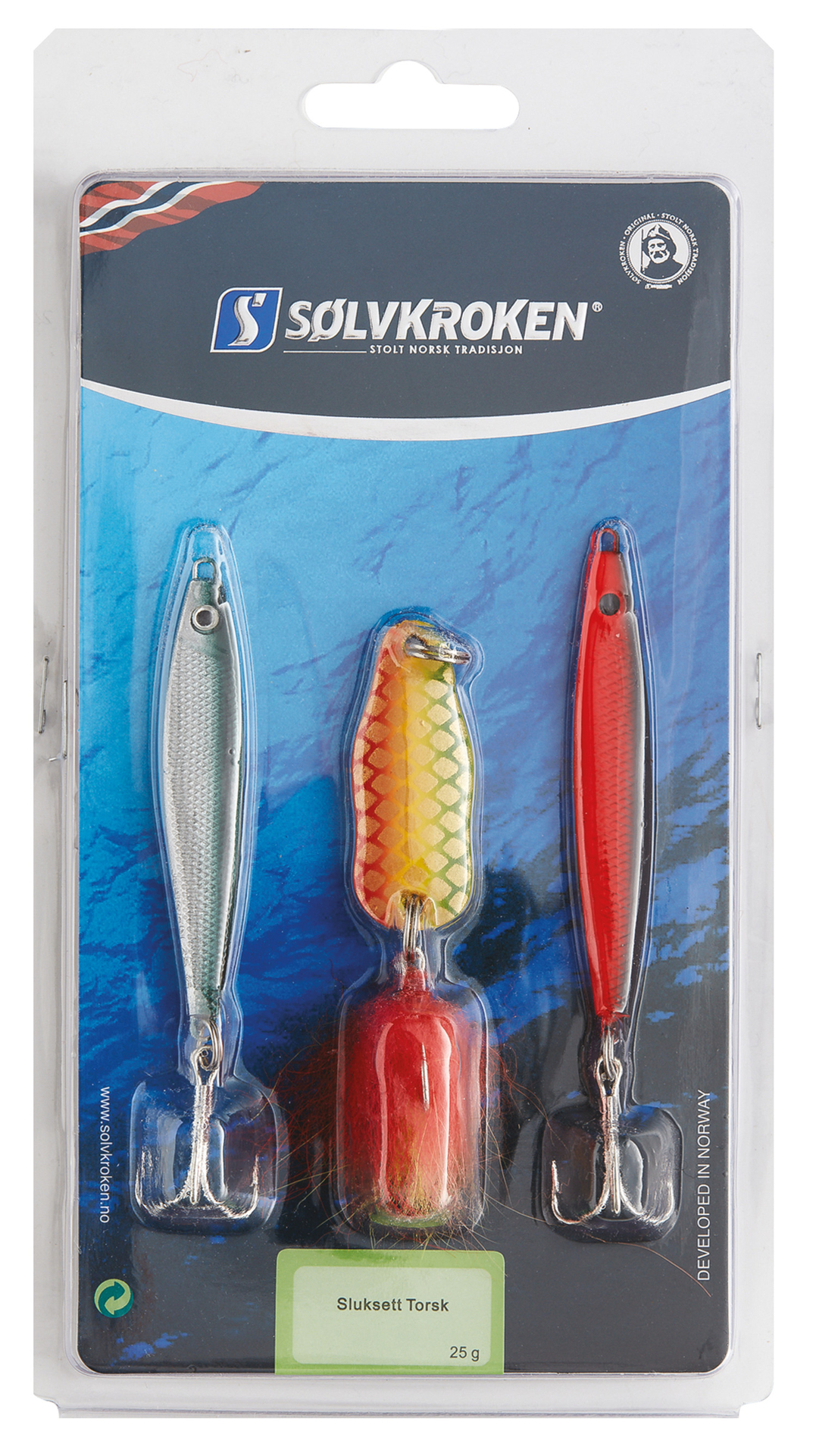 Torskesluker som kan brukes både fra land og fra båt. Settets tre 25 grams sluker er: Jensen Pirken, Slukhals og Jensen Sild. Slukhals regnes som den ultimate torskesluken, fordi den har form og farge som en krabbe; torskens favorittmåltid. Alle sluker 25g.
